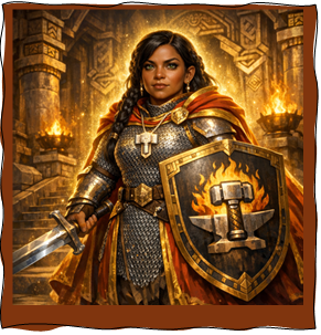 Upon that loss, she forged her own vow. Devoting herself to Mordain the Soulforger, Andarna took up the mantle of a holy warrior. She set forth into Etharis to seek companions of courage and conviction—those willing to stand against the Evil that had broken her people. For only by cleansing the land of its darkness could the dwarves reclaim Underhall and fulfill her father’s long‑dreamed hope.