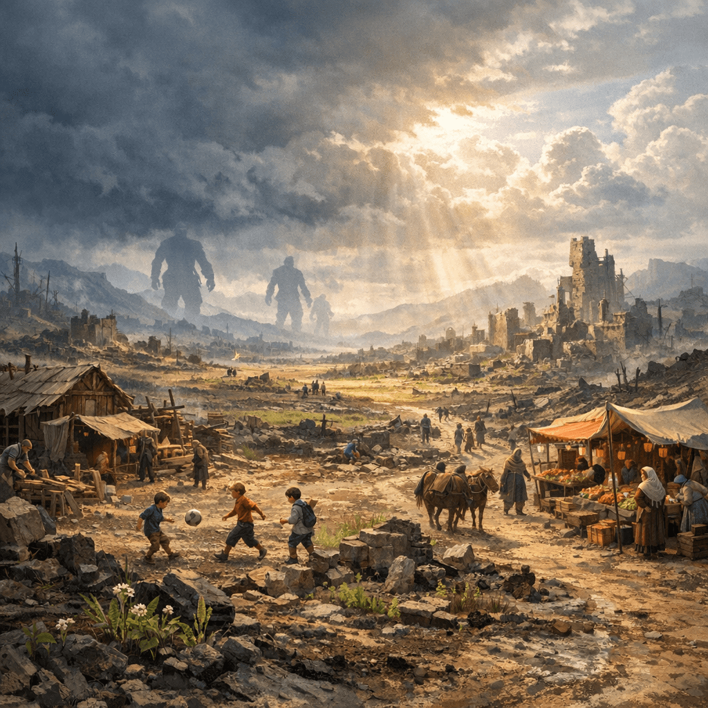 Rumors spread like wildfire—giants marching in the North, their raids growing bolder and more frequent. Whispers tell of other regions suffering the same fate, each tale darker than the last. For a people already brought to their knees, this looming threat casts a fresh and heavy shadow over an already bleak future.